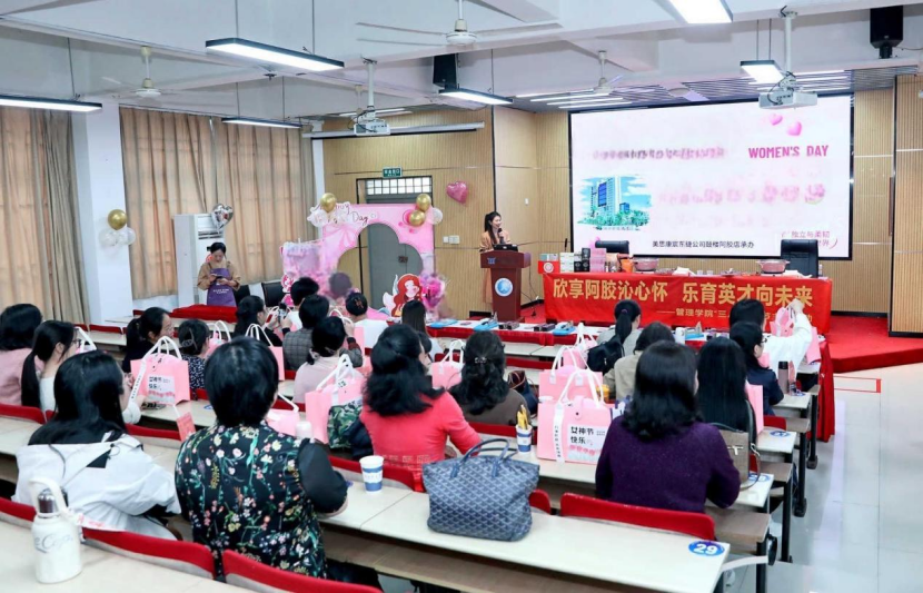 2025年3月12日,为弘扬传统养生文化,赋能女性健康生活,国内知名大健康品牌美思康宸的资深经销商团队受邀走进福建理工大学管理学院,成功举办“胶韵芳华 绽放她力量”主题阿胶沙龙活动。本次活动吸引了学院数近三十位女教师参与,通过沉浸式文化科普、互动体验等形式,共同探索阿胶的千年智慧与现代应用价值。