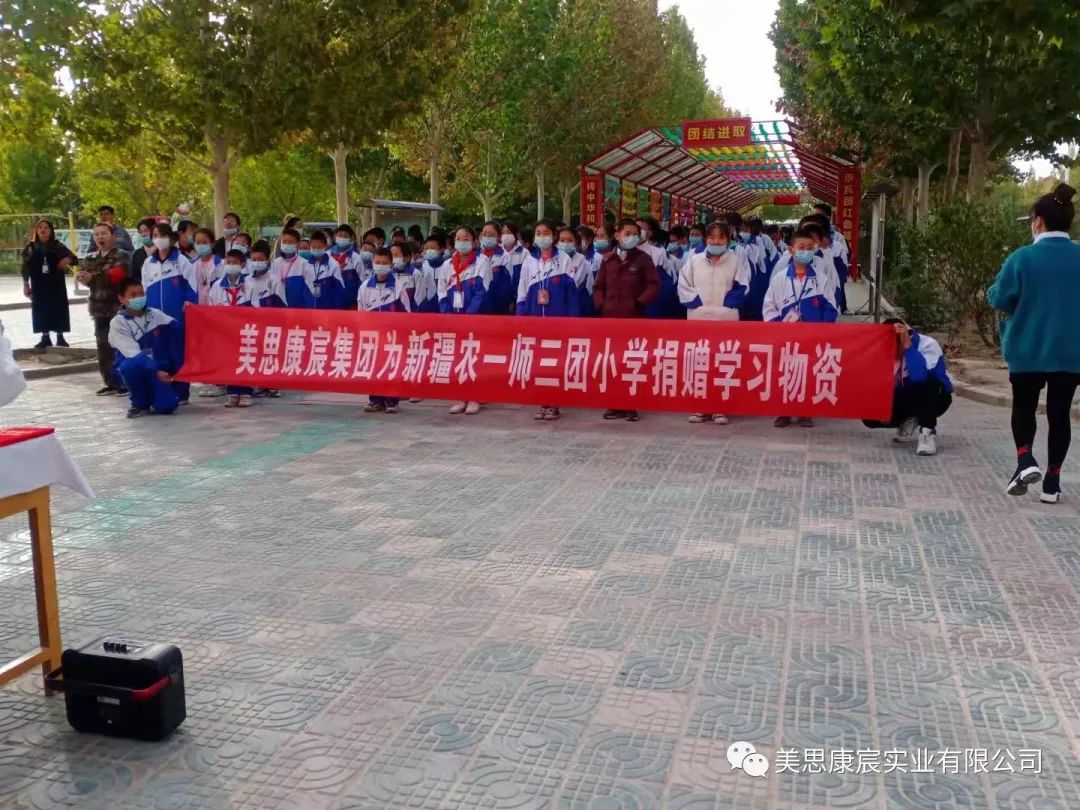 昨日,美思康宸为新疆农一师三团小学捐赠学习用品仪式在新疆阿克苏一师三团小学举行。
